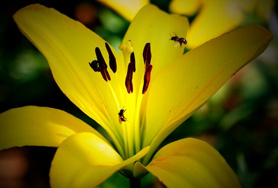 “窖西花谷”里百合花开,引来蜜蜂争相采蜜。 她们“ 纷纷穿飞万花间,终生未得半日闲。”勤劳的蜜蜂辛苦啦!“采得百花成蜜后,为谁辛苦为谁甜。”为人民服务的小蜜蜂,你们是高尚的!!!